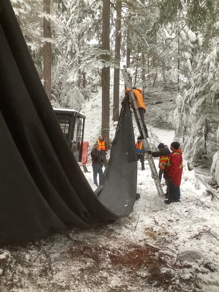 Pictured: Construction of the Maternity Pen with donated geotextile cloth from Interfor