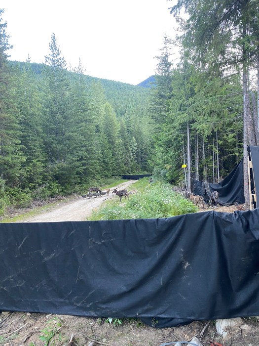 The Arrow Lakes Caribou Society released all 13 of the caribou from the Central Selkirk Maternity Pen on Friday, July 22nd. The geotextile fabric of the maternity pen was cut at 5:00 am on Friday, July 22nd to create an exit point for the caribou. The caribou were apprehensive at first and unsure about exiting the pen, but they were interested in the lichen that was spread around outside the pen. ALCS shepherds set up temporary fencing along the Kuskanax Forest Service Road to encourage the caribou to travel up Raven Creek, which is the fastest route to the alpine from the maternity pen location.